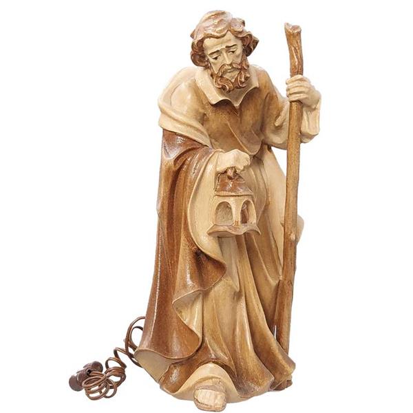 Der holzgeschnitzte Josef hat in der Laterne ein gelbliches Mini-Birnchen 3,5 Volt mit ca. 60 cm Kabel und Stecker. Zum Betrieb der elektrischen Laterne ist entweder unser Krippentrafo Art. 060-ZU50959 oder unsere Batterie Art. 060-ZUBATTER mit Batteriekappe Art. 060-ZU50073 geeignet.